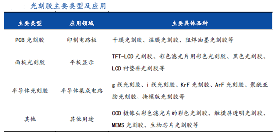 光刻膠主要類型及應用