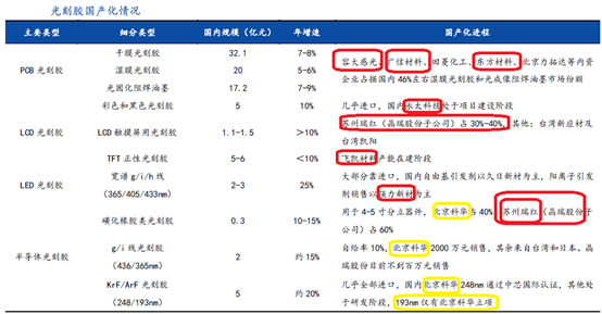 光刻膠產業鏈主要國內公司
