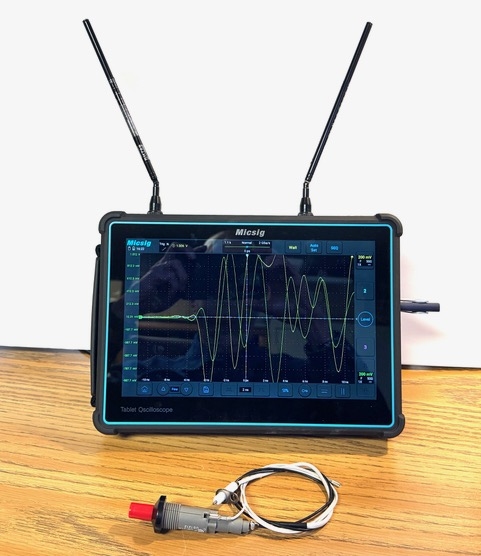 像Micsig TO3004示波器[4]這樣的示波器非常適合這個應用,因為所有輸入端口都位于頂部。這樣我就能把短伸縮天線連接到頻道1和4(用于間距)。圖1展示了示波器和我的燒烤打火機作為測試源。