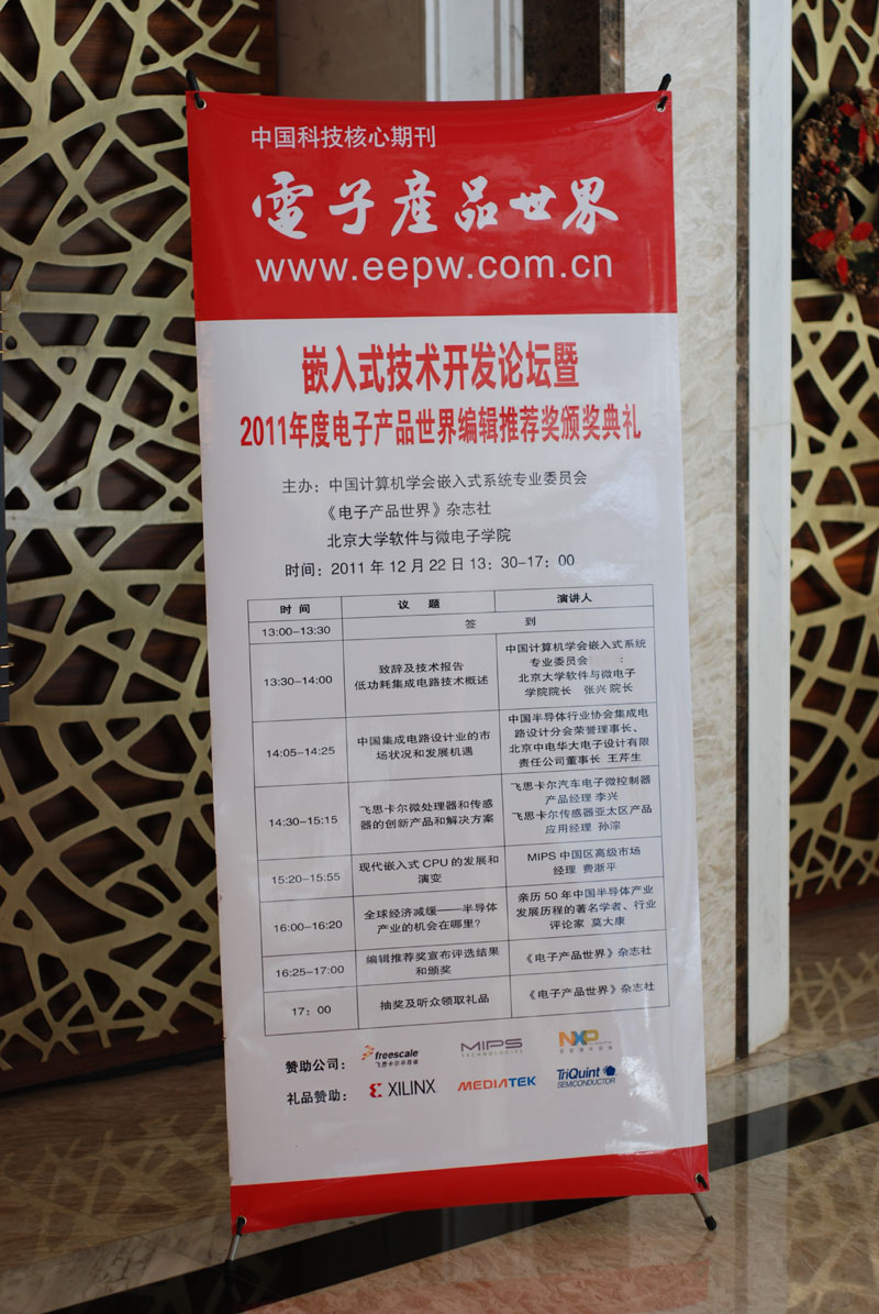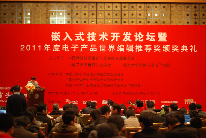 12月22日,由中國計算機學會嵌入式系統專業委員會(微機專業委員會)、電子產品世界雜志社、北京大學軟件與微電子學院舉辦的2011年嵌入式技術開發論壇暨2011年度電子產品世界編輯推薦獎頒獎典禮在北京大學英杰交流中心陽光大廳隆重舉辦。來自北京大學、中科院研究生院、北京航空航天大學、北京郵電大學,北京理工大學和北京科技大學等高校的兩百多名電子信息專業研究生和周邊資深電子技術工程師參加了此次盛會。查看詳情>>