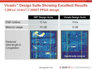 考慮到當(dāng)今的設(shè)計(jì)規(guī)模大、復(fù)雜性高的特點(diǎn),開(kāi)發(fā)人員面臨著多重設(shè)計(jì)挑戰(zhàn),難以實(shí)現(xiàn)自動(dòng)設(shè)計(jì)收斂。Vivado設(shè)計(jì)套件的布局布線技術(shù)采用各種分析技巧加速實(shí)現(xiàn)周期,為多種同步的設(shè)計(jì)參數(shù)(包括擁塞、總線長(zhǎng)和時(shí)序等)進(jìn)行最佳優(yōu)化。針對(duì)復(fù)雜設(shè)計(jì),和ISE設(shè)計(jì)套件相比,Vivado設(shè)計(jì)套件2012.2將性能提升了15%(相當(dāng)于提升了一個(gè)速度等級(jí))。性能的提升不僅擴(kuò)大了賽靈思在中端產(chǎn)品系列的領(lǐng)先優(yōu)勢(shì),使其性能領(lǐng)先競(jìng)爭(zhēng)器件3個(gè)速度等級(jí),同時(shí)在高端產(chǎn)品系列提供了更好的性能功耗比, 在低端各個(gè)產(chǎn)品系列提供了更佳的性能。