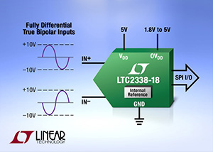 LTC2338-18是一個 18 位、1Msps、無延遲模數轉換器,具備寬 ±10.24V 全差分、真正雙極性輸入范圍,適合高電壓和工業應用。該器件采用單 5V 電源,可實現 100dB SNR和 -110dB THD,并具備一個 2.048V (漂移最大值為 20ppm/oC) 內部基準和基準緩沖器。一個輸入分壓器網絡用于對輸入信號進行調節和電平移位,從而免除了直接連接真正雙極性信號所需的復雜電路。