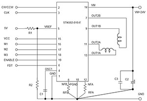 STK682-010-E是一款步進電機驅動器混合集成電路(HIC),內置精度可達1/128步的超微步控制器,基于雙極型恒流PWM系統。這器件提供內置4相分配步進電機控制器,配合簡化應用及標準化。典型應用包括 大尺寸打印機、保安攝像機、工業機器及舞臺照明系統等。