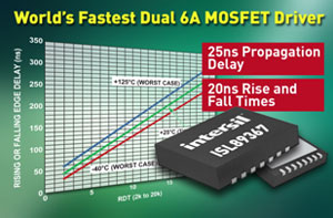 Intersil公司推出業內首款雙6A峰值電流驅動能力的雙通道MOSFET驅動器---ISL89367。此款獨特器件為設計人員提供了高速驅動多個并聯大電流功率MOSFET的集成解決方案,非常適合用于開關電源、電機驅動器和D類放大器等應用。