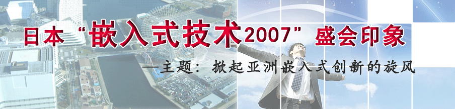 2007年11月14~17日,日本橫濱舉辦了盛大的“ET2007”(Embedded Technology2007,嵌入式技術2007)研討暨展示會。有200家左右的參展商參展,100多場主題講演和報告。會議是由日本嵌入式系統技術協會(JASA)主辦,橫濱市政府、印度大使館、美國大使館等機關贊助。
