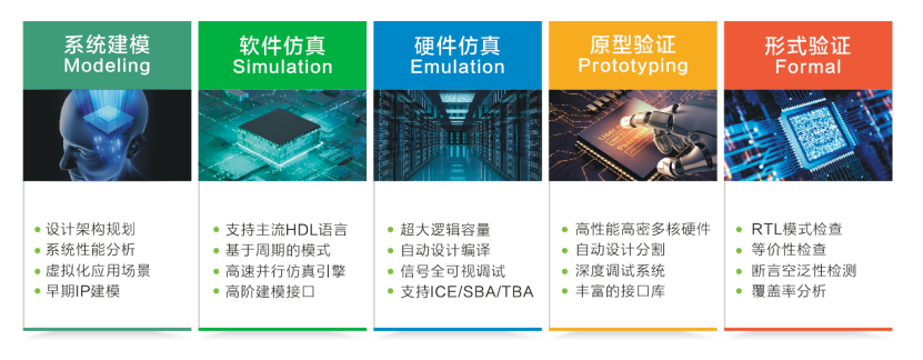 國微思爾芯提出基于驗證云系統的統一驗證平臺,包括系統建模、軟件仿真、硬件仿真、原型驗證、形式驗證等解決方案。這些解決方案采用統一的編譯/控制腳本和統一的核心數據庫,芯片開發者可以在項目生命周期的不同階段選擇最合適的一個解決方案,并可隨著項目的開發進展平滑的遷移到更合適的解決方案,減少切換成本。統一驗證平臺確保各個階段驗證任務都可在一個環境中完成,由于采用混合驗證,客戶得以縮短芯片設計周期,加速產品上市。