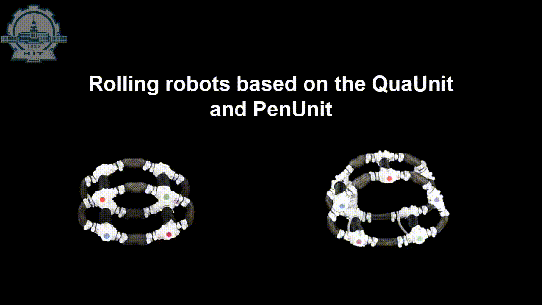 滾動是動物中罕見的運動能力,理論上可將多個全向彎曲單元 (如TriUnits) 堆疊用于垂直滾動步態。但假如只有一個單元,滾動將變得更具挑戰性,因為機器人需要大幅改變重心。為了實現這一目標,本研究在設計中采用了初始二維驅動器網格的橫向疊加,而不是軸向疊加。首先,測試了基于四邊形單元的NRS單元 (簡稱QuadUnit)。QuadUnit具有一個形狀自由度,重心的變化范圍可以滿足滾動的要求。但是它的對稱結構使得滾動行為更加隨機,這限制了滾動的可控性,使得它只適用于動態滾動[而不是靜態滾動。