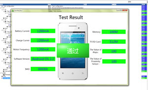 測試系統的測試項基本上涵蓋了目前主流手機的所有功能,包括:手機攝像頭(前后)測試、閃光測試、聽筒測試、耳機測試、收音機測試、液晶屏測試、觸屏測試、背光測試、按鍵測試、喇叭測試、麥克測試、回環測試、藍牙測試、WIFI測試、GPS導航測試、重力傳感器測試、電視功能測試、近距離無線通訊測試、電池電流測試、充電電流測試、馬達測試、軟件版本測試、IMEI串號測試、內存大小測試、插卡測試、感光功能測試、接近傳感器測試等功能。