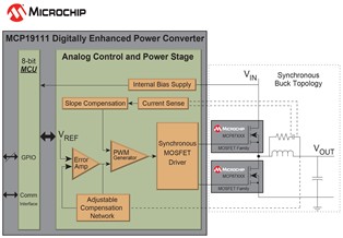 MCP19111數(shù)字增強(qiáng)型電源模擬系列可在4.5V至32V的寬電壓范圍內(nèi)工作,與傳統(tǒng)基于模擬技術(shù)的解決方案相比,靈活性顯著提升。事實上,MCP19111是世界上第一款合成的混合信號電源管理控制器,將基于模擬的PWM控制器與功能齊全的閃存單片機(jī)集于一體。這樣的集成提供了數(shù)字解決方案的靈活性,也具備基于模擬的控制器的速度、性能和分辨率。MCP19111器件支持高達(dá)32V的運(yùn)行,并提供針對同步降壓應(yīng)用而配置的集成MOSFET驅(qū)動器。當(dāng)與Microchip擴(kuò)展的高速MOSFET系列結(jié)合使用時,MCP19111能夠驅(qū)動可定制的高效率電源轉(zhuǎn)換。