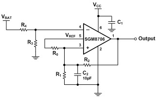 SGM8706在應用中非常簡單。產(chǎn)品管腳定義考慮到了PCB布板要求,設計方便簡單。在實際設計中,比較器一般要加入滯回電路來加強設計的可靠性、避免輸入級的電壓波動對系統(tǒng)的影響。圣邦微電子設計了一款根據(jù)滯回電壓選取合適阻值的應用軟件,可供廣大應用工程師使用。 |