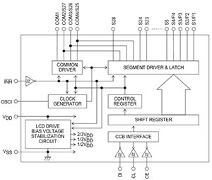 - 支持通過串行數據控制來實現靜態(1/1占空比),或1/2占空比1/2偏置,或1/3占空比1/3偏置,或1/4占空比1/3偏置驅動