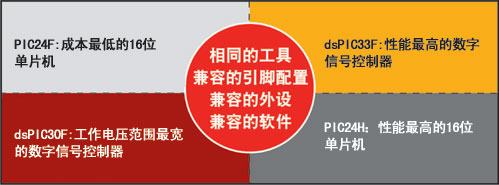 Microchip提供了2個16位單片機(MCU)系列以及2個16位數字信號控制器(Digital Signal Controller,DSC)系列產品,您可以在價格、性能以及功能集等多個方面做出兼容選擇。
