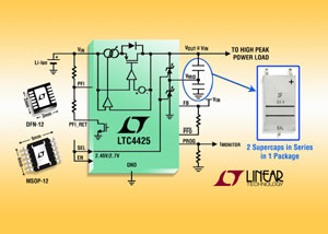 凌力爾特 (Linear) 推出兩節超級電容器充電器系列的最新產品 LTC4425,該產品系列在便攜式和數據存儲應用中滿足大峰值功率、數據備份和拯救“瀕臨電源崩潰”的需求。該器件采用具熱量限制的線性恒定電流 - 恒定電壓 (CC-CV) 架構,從鋰離子/聚合物電池、USB 端口或其它 2.7V 至 5.5V 的電流受限電源,將兩節串聯的超級電容器充電至可編程的輸出電壓。