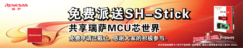 1) 由于免費SH-Stick軟件開發(fā)工具數(shù)量有限,本次活動已于2009年10月23日結束申請,敬請廣大的瑞薩產(chǎn)品用戶及關注者予以