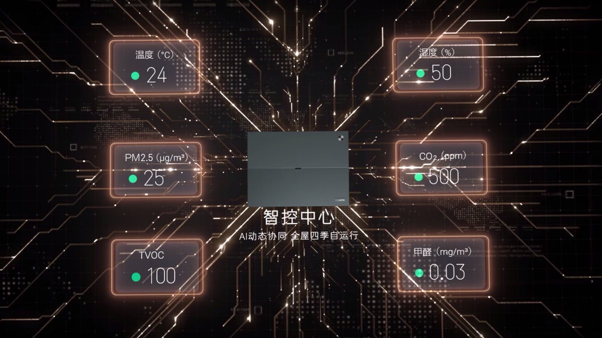 該系統(tǒng)集制冷、制熱、新風、加濕、除濕、凈化、殺菌于一身。通過AI多系統(tǒng)智能協(xié)同,實現(xiàn)“主動思考”的空氣管理,無需人工調(diào)節(jié),即可自動維持全屋最佳空氣狀態(tài)。全屋空氣可通過一塊智慧屏統(tǒng)一管控,搭配語音控制功能,老人小孩皆可輕松操作。
